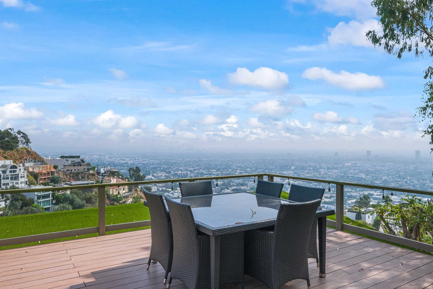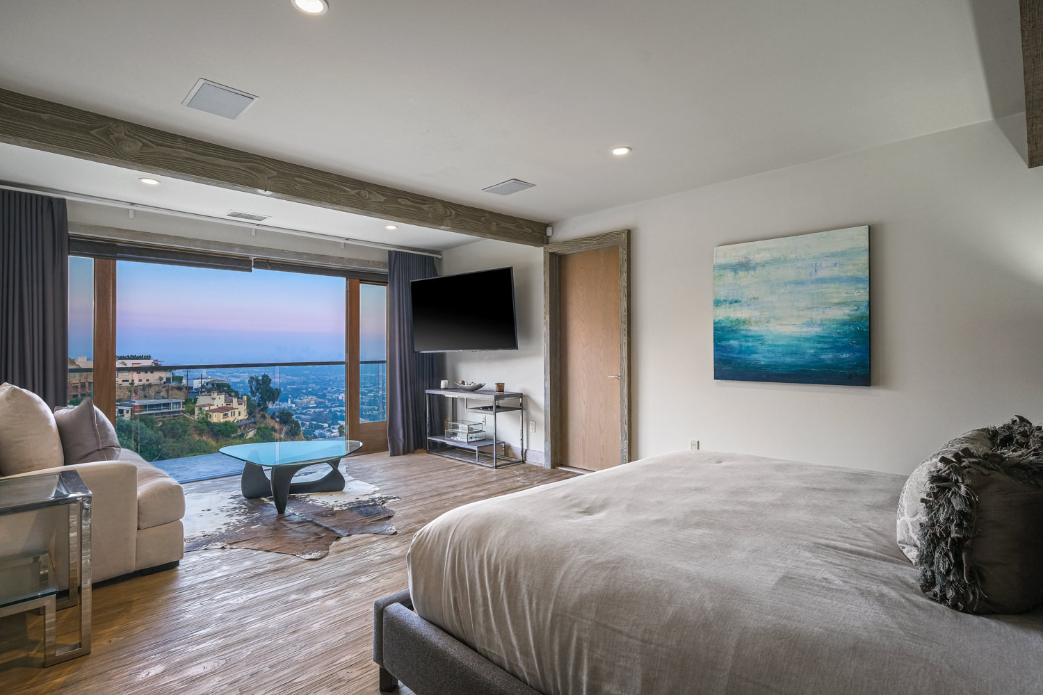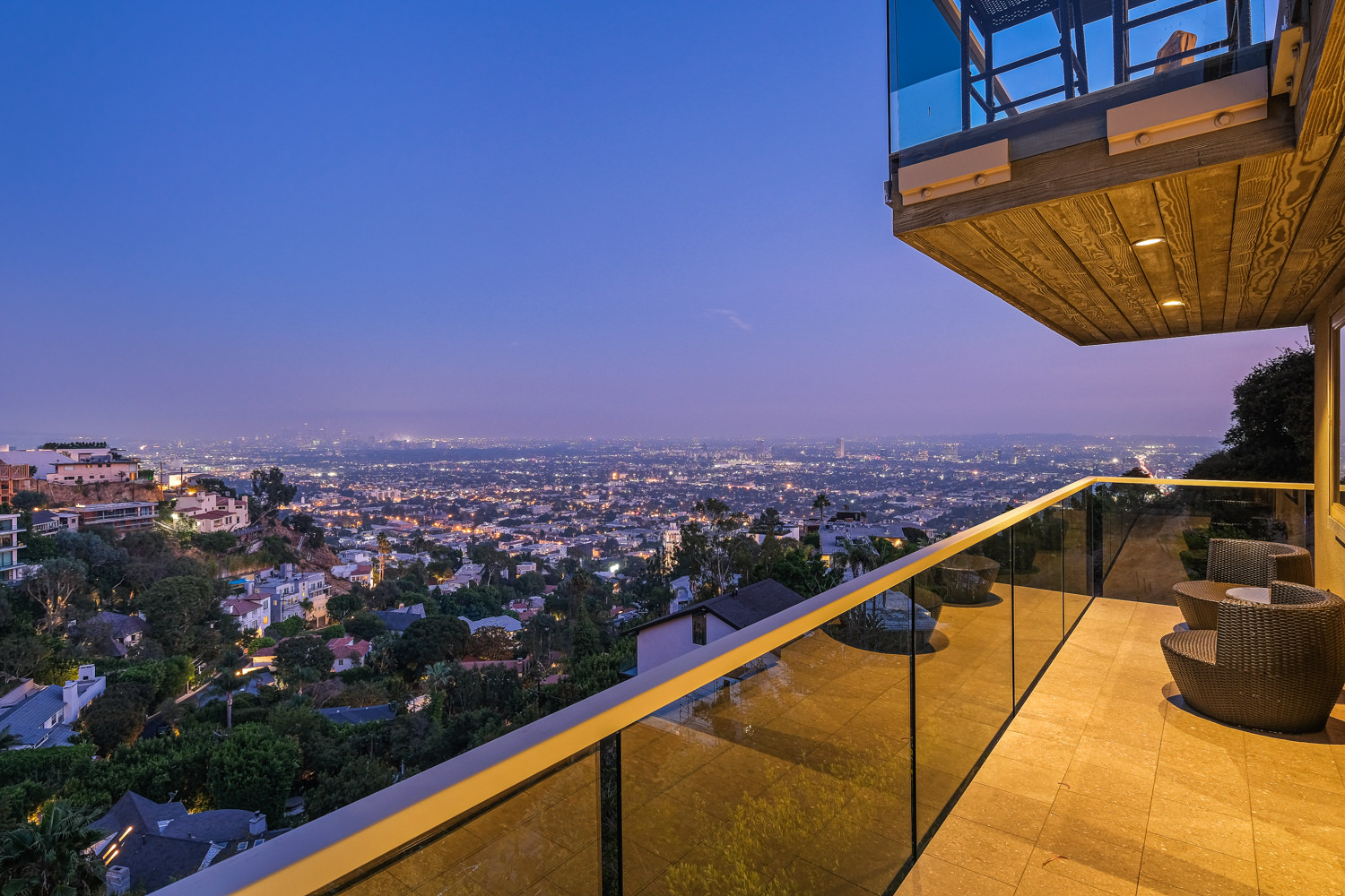 Nestled just above the Sunset Strip with commanding jetliner views from downtown to the ocean, this impressive 4 bedroom home boasts an open floor plan, high vaulted wood-beamed ceilings, and floor to ceiling glass pockets doors to the outside. The spectacular main level boasts a contemporary kitchen opening to a spacious dining area and family room with a fireplace. Downstairs features a well-appointed owner's suite, sitting room, and large walk-in closet. A wraparound deck, separate office area, private spa, and massive entertainment rooftop create the perfect entertainment lifestyle. 2-car garage, large laundry room, ample storage space, and smart home features.