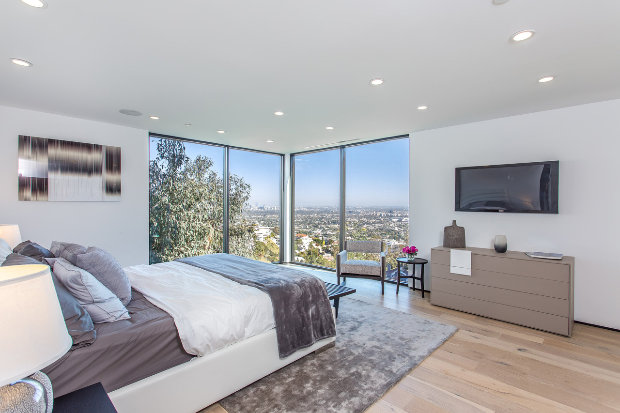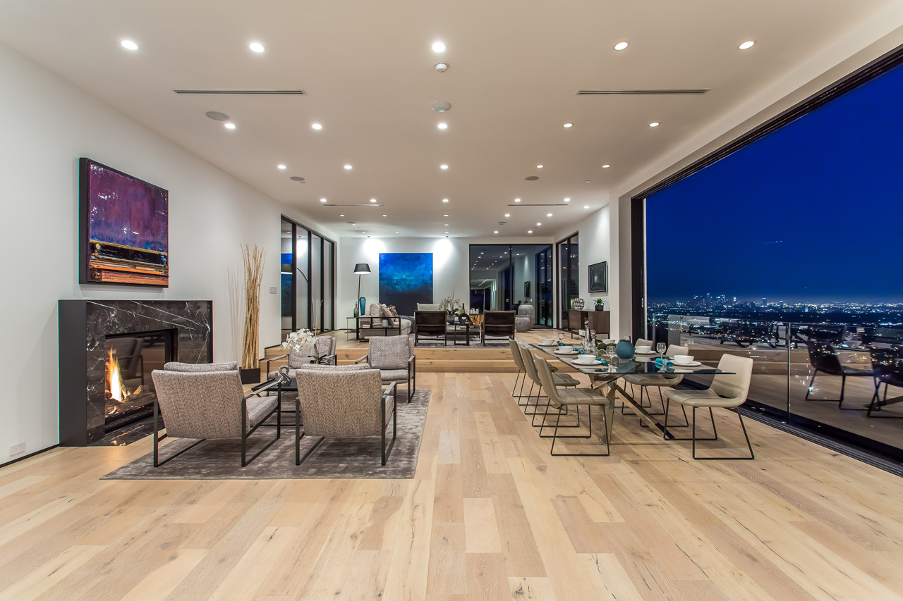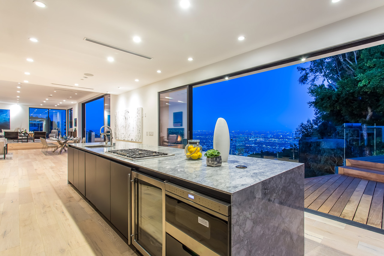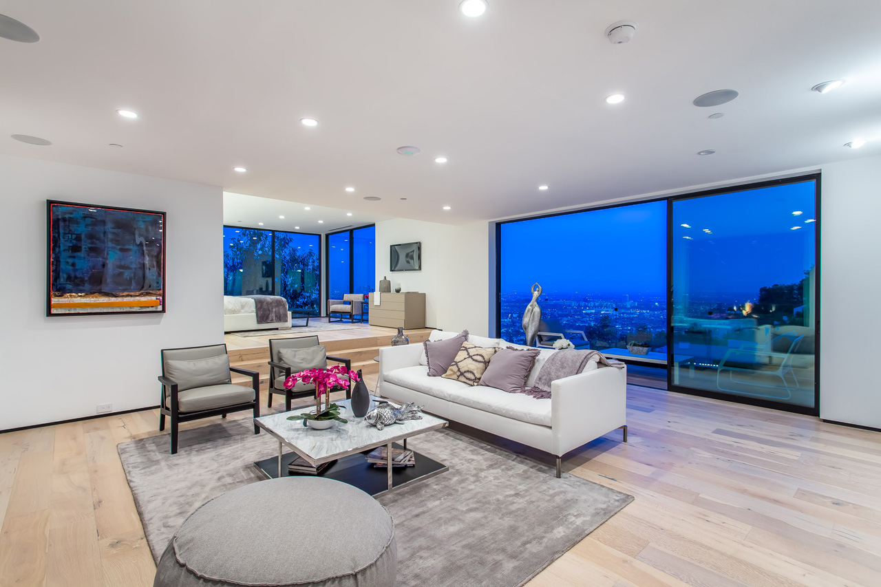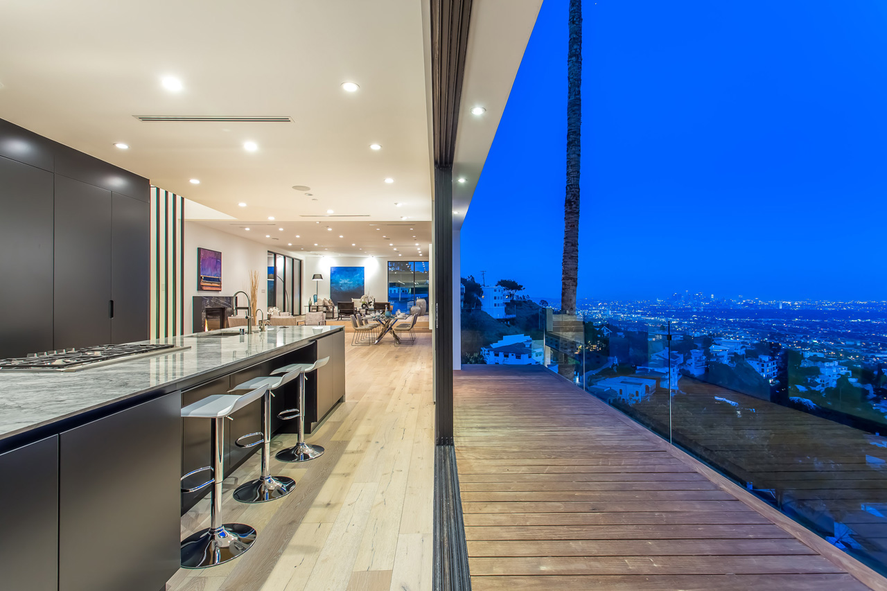 Set above the Sunset Strip with panoramic city views from every room through floor-to-ceiling glass walls, this rare modern marvel is an entertainer’s dream. Constructed over an expansive and rare double lot perched, this raw architectural feat - with use of French White Oak floors and Italian Marble throughout - showcases a sleek and refined modern masterpiece. Vast indoor/outdoor entertaining leads to a large pool/spa and multi-level covered patio outfitted with full audio and lighting. A Porsche design barbecue and outdoor fire-pit completes a landscaped oasis with designer rose garden. This perfectly executed home is just minutes from the Sunset Strip yet provides a sense of tranquility nestled on a private cul-de-sac.