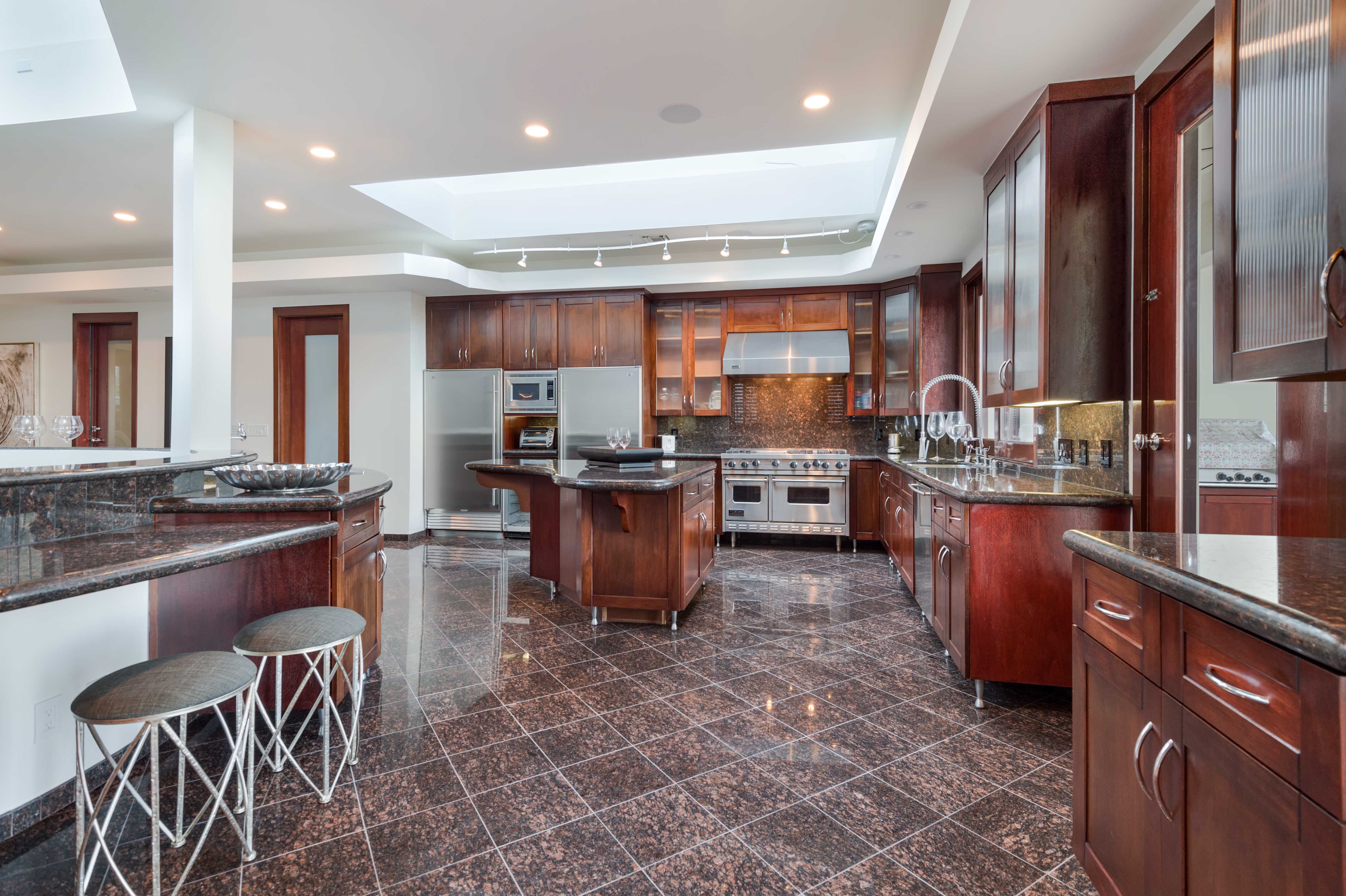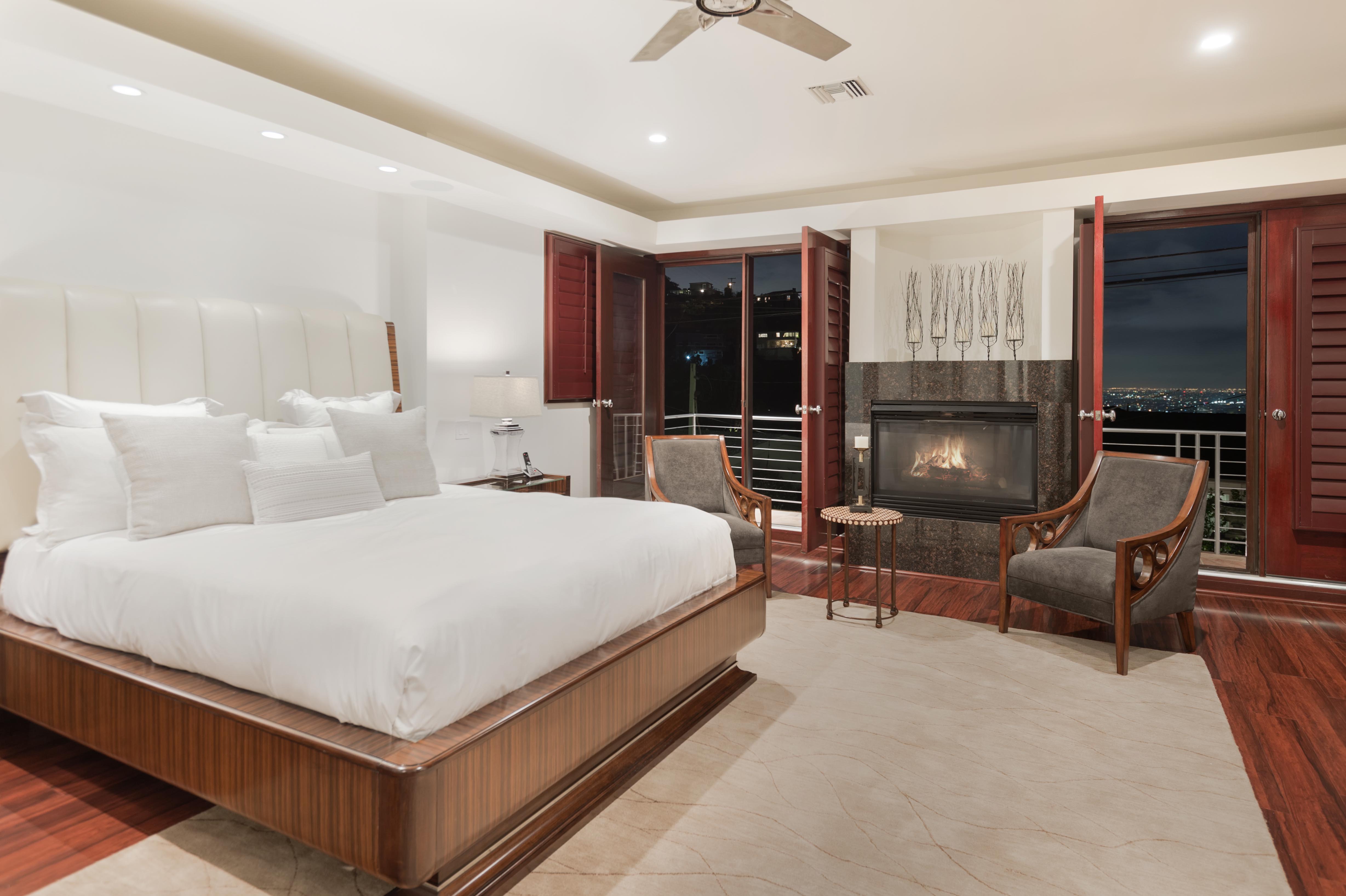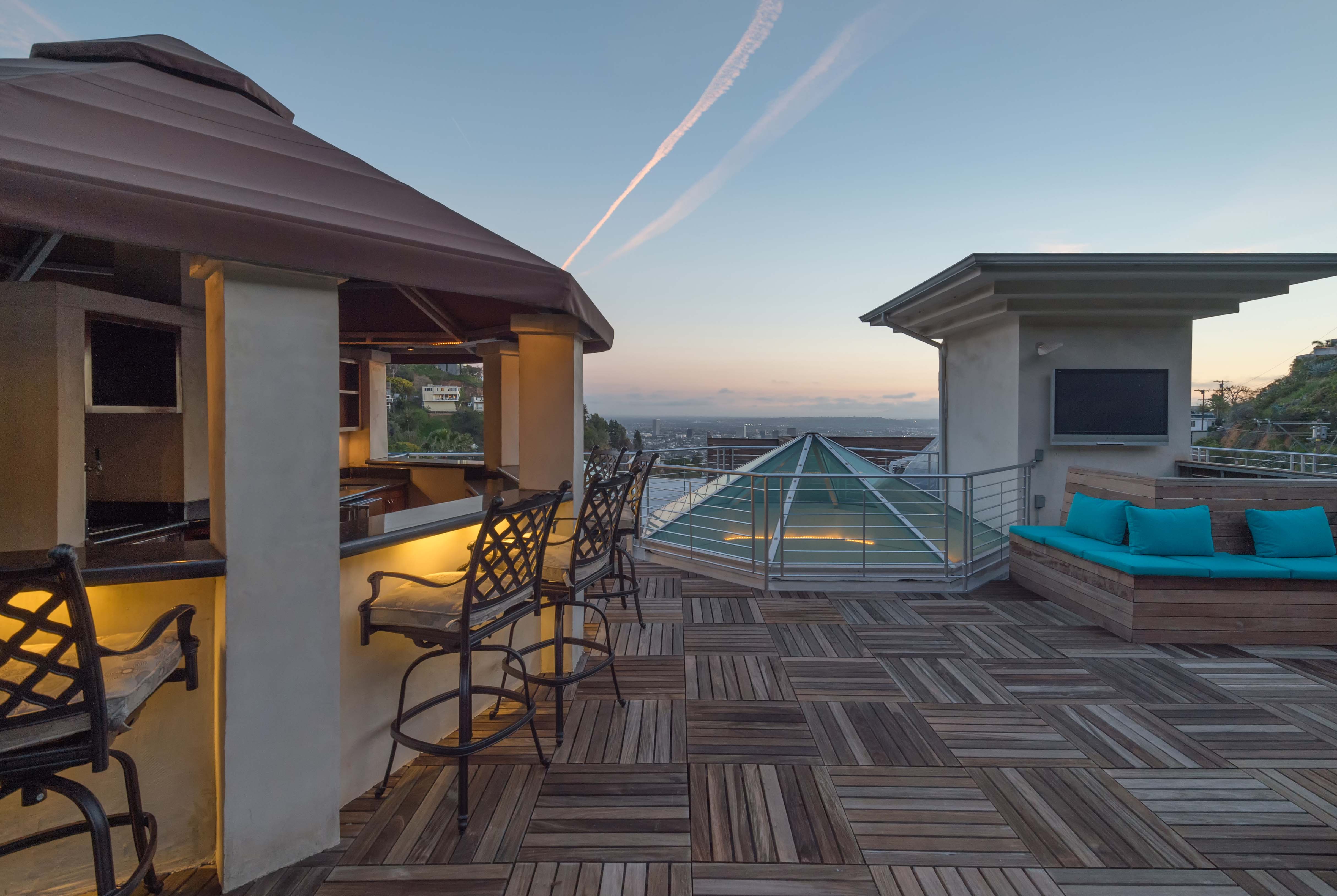 Located just above the Sunset Strip, this custom home offers city views, a large master suite with separate his and her bathrooms and closets, a spacious movie theater, and an elevator that takes you to a very private 2,000 sq. ft. roof top deck, complete with a cabana/bar, pool and spa. Other amenities include a game room, gourmet kitchen, dry sauna, wine room, and custom built granite stairway with cherry wood floors throughout, and a large three-car garage. Situated on a quiet and desirable cul-de-sac street just off Sunset Plaza Dr., it’s the best priced home in the area.