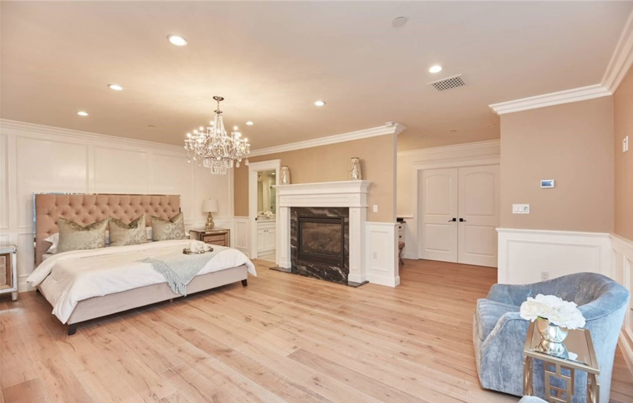Prestigious Estate with exquisite attention to detail, located in the sought out area of Bel Air! Nestled on a tree-lined street with a dramatic entry to a two-story foyer. Soaring ceilings, French Arched Windows and an impressive open floor plan is carried throughout the home. The main level features a spacious living room with a grand fireplace, built in cabinetry and French bifold doors opening up to the lush landscaping and outdoor entertaining area. A private formal dinning room with a custom vine cellar flows over to a Chefs Kitchen with Thermador appliance and infinite marbled center island. The upstairs includes the master suite, generous in its size overlooking the gardens, boasting a fireplace and lounge area flowing to a double sink vanity in the master bathroom and a walk-in-closet. The additional en-suite features walk-in-closet, lots of natural sunlight and a private balcony. A serene outdoor, is the perfect entertainment area with built in cooking grounds wrapped around in sitting areas with a fire pit. Privacy evoked by lavish greenery completes the oasis with zero edge pool, grassy pads and secluded terraces. Desirable location near LAs finest Restaurants, Entertainment and The Getty Museum. Minutes away from top ranked schools!