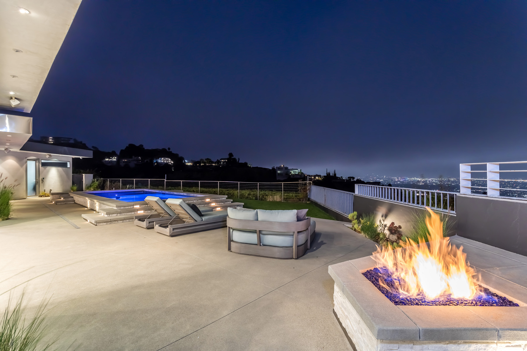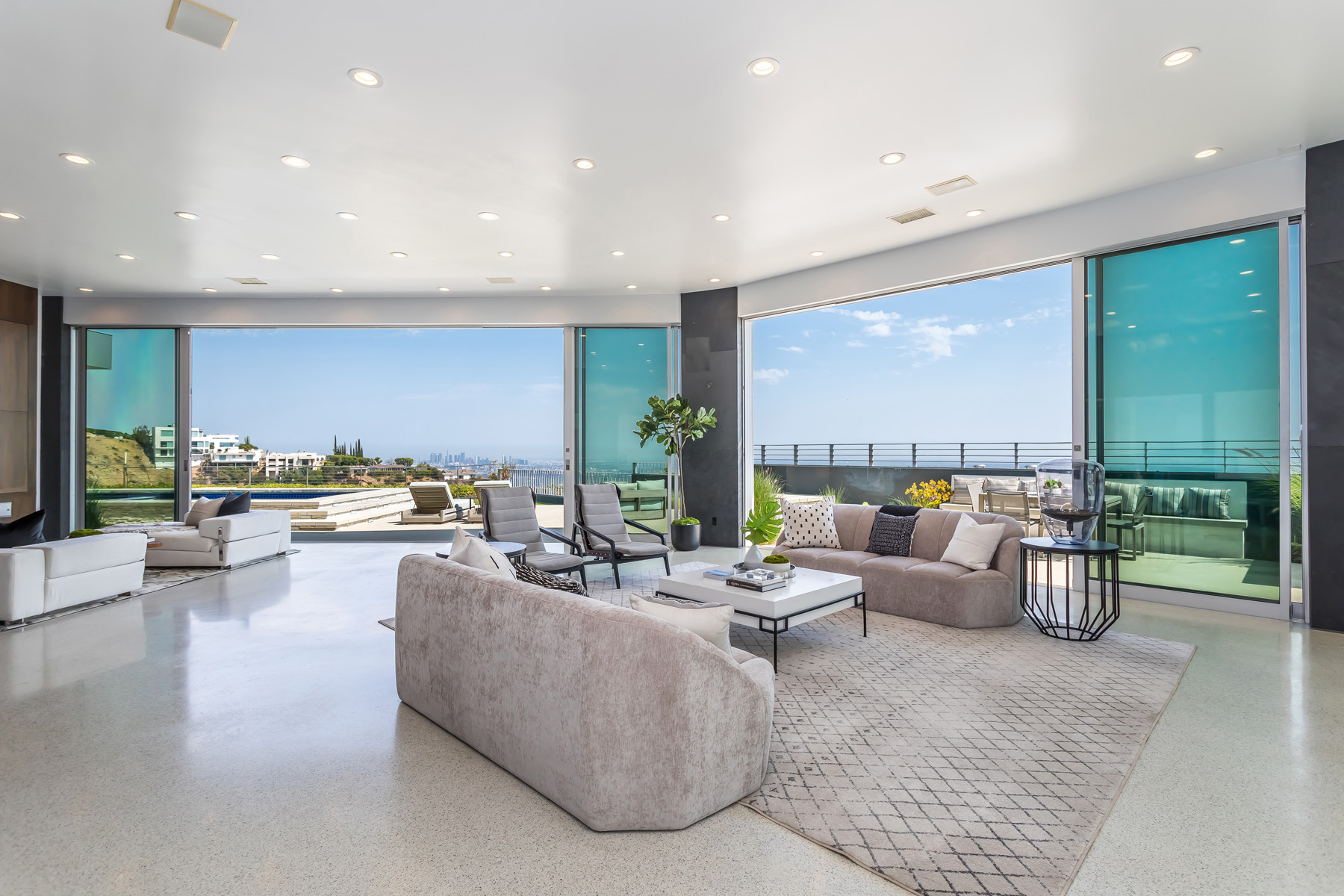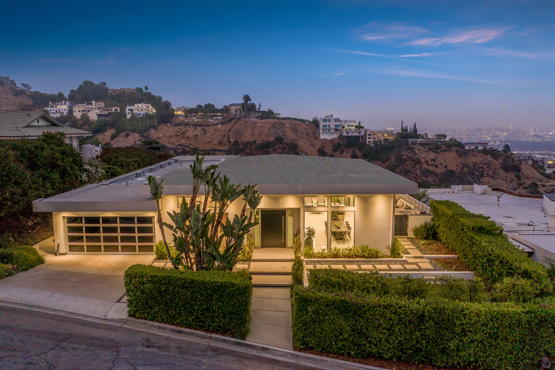 This sophisticated home with stunning design is located at the top of the prestigious Doheny Estates and offers expansive walls of glass with spectacular panoramic city and ocean views. This recently renovated modern home with 4 beds, 4 baths, and office, boasts the convenience of a one-level floorplan. Other features include a 1,600 sq. ft. great room with 12 ceilings, poured-in-place terrazzo floors, and Fleetwood motorized sliding doors opening onto a vast entertainer's outdoor space replete with a pool, spa, fire pit, and outdoor kitchen/dining area. The spacious and luxurious primary suite comes replete with hardwood floors, a spa-like bath, and a generous walk-in closet and opens up directly to the pool, spa, and outdoor shower. In addition to the two-car attached garage with direct access, there are two off-street parking spaces as well. This property offers the classic setting for Southern California living, tailor-made for indoor/outdoor living and entertaining, in one of the most desirable areas in Los Angeles.
