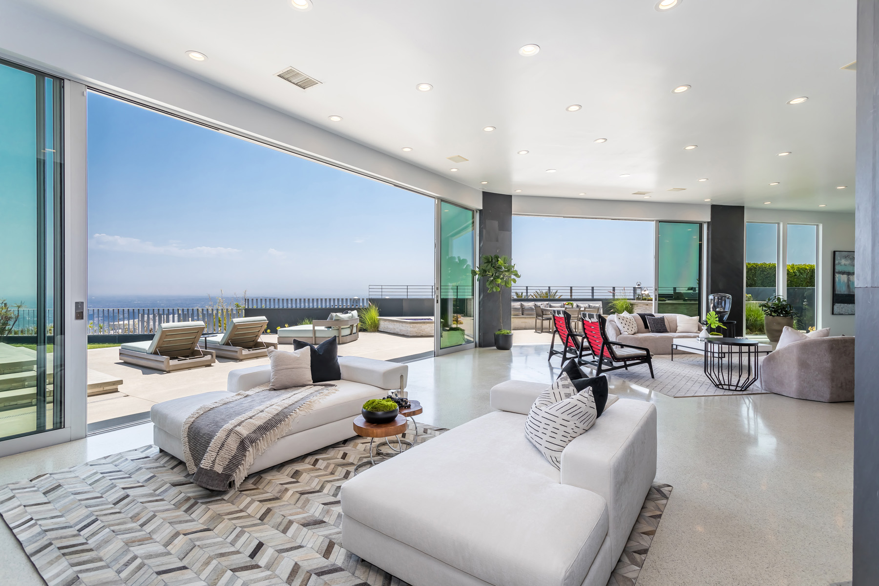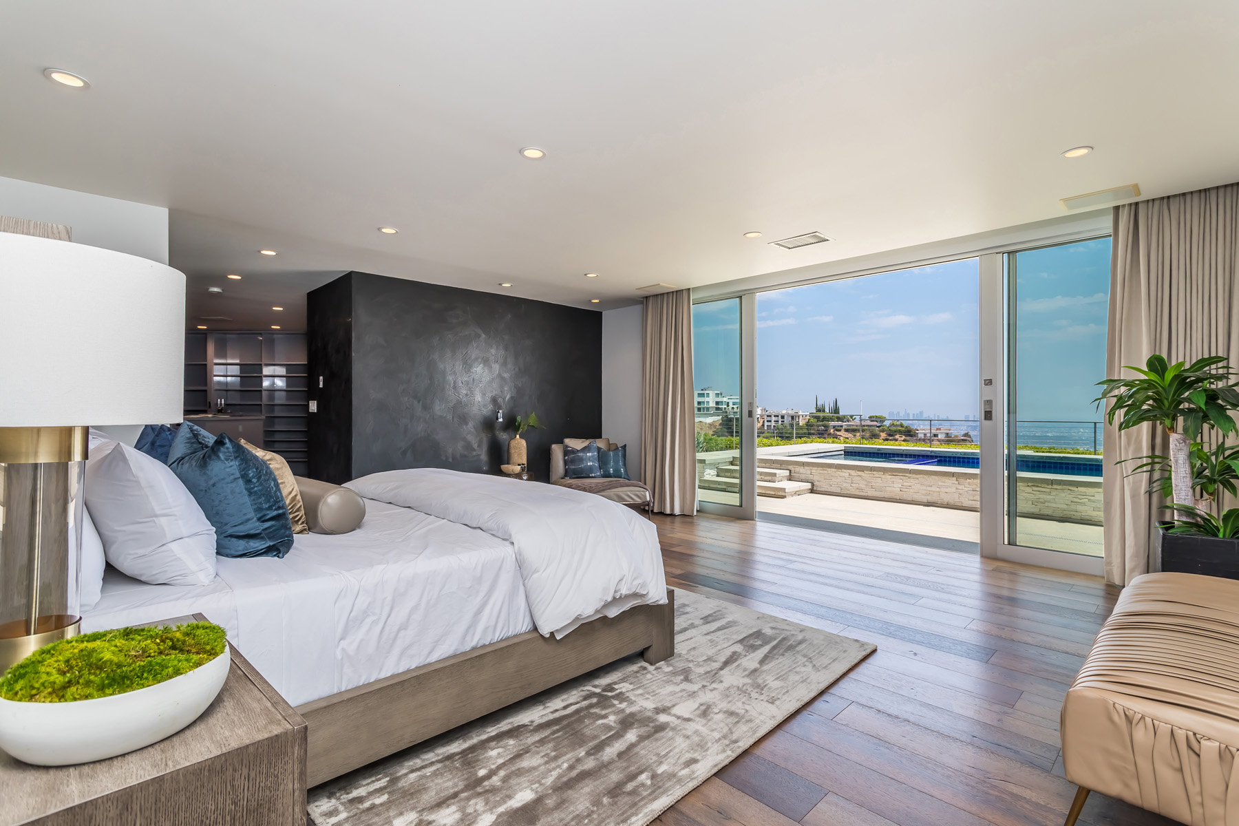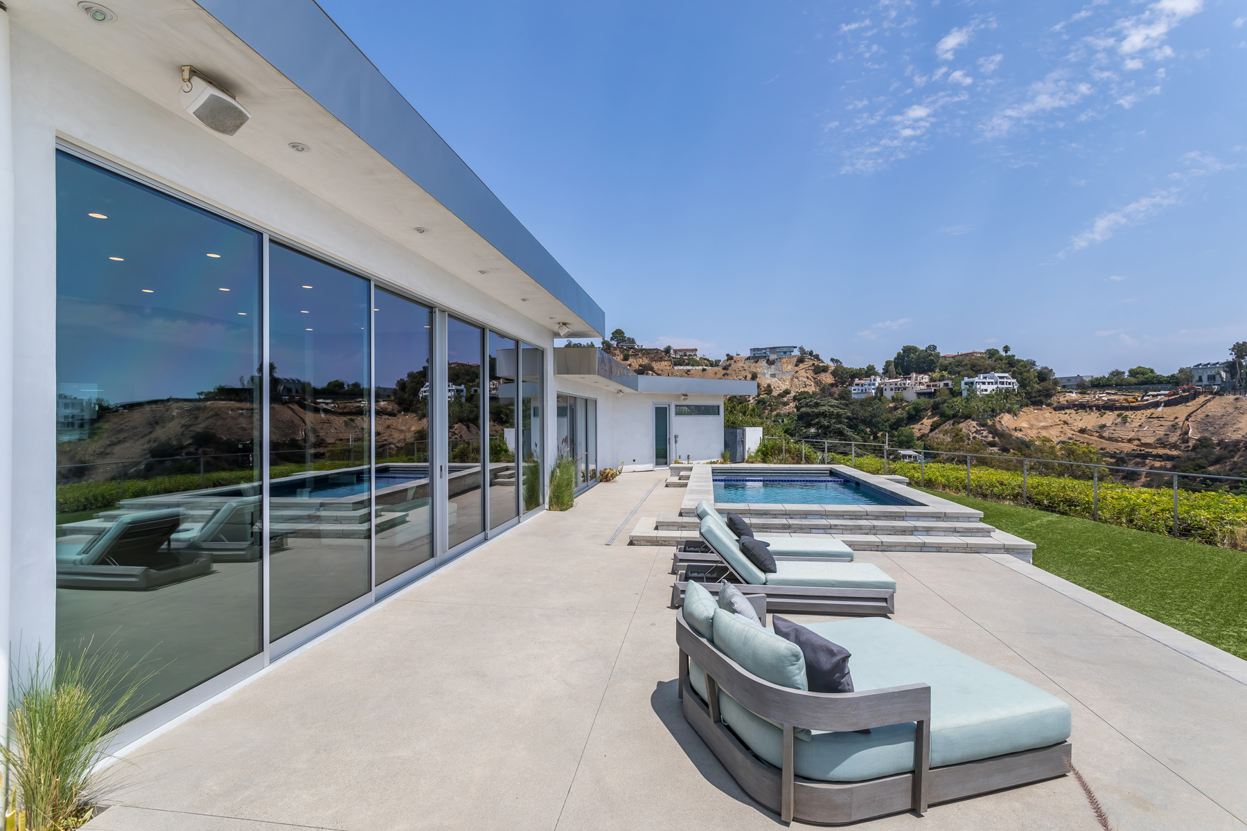 This sophisticated home with stunning design is located at the top of the prestigious Doheny Estates and offers expansive walls of glass with spectacular panoramic city and ocean views. This recently renovated modern home with 4 beds, 4 baths, and office, boasts the convenience of a one-level floorplan. Other features include a 1,600 sq. ft. great room with 12 ceilings, poured-in-place terrazzo floors, and Fleetwood motorized sliding doors opening onto a vast entertainer's outdoor space replete with a pool, spa, fire pit, and outdoor kitchen/dining area. The spacious and luxurious primary suite comes replete with hardwood floors, a spa-like bath, and a generous walk-in closet and opens up directly to the pool, spa, and outdoor shower. In addition to the two-car attached garage with direct access, there are two off-street parking spaces as well. This property offers the classic setting for Southern California living, tailor-made for indoor/outdoor living and entertaining, in one of the most desirable areas in Los Angeles.