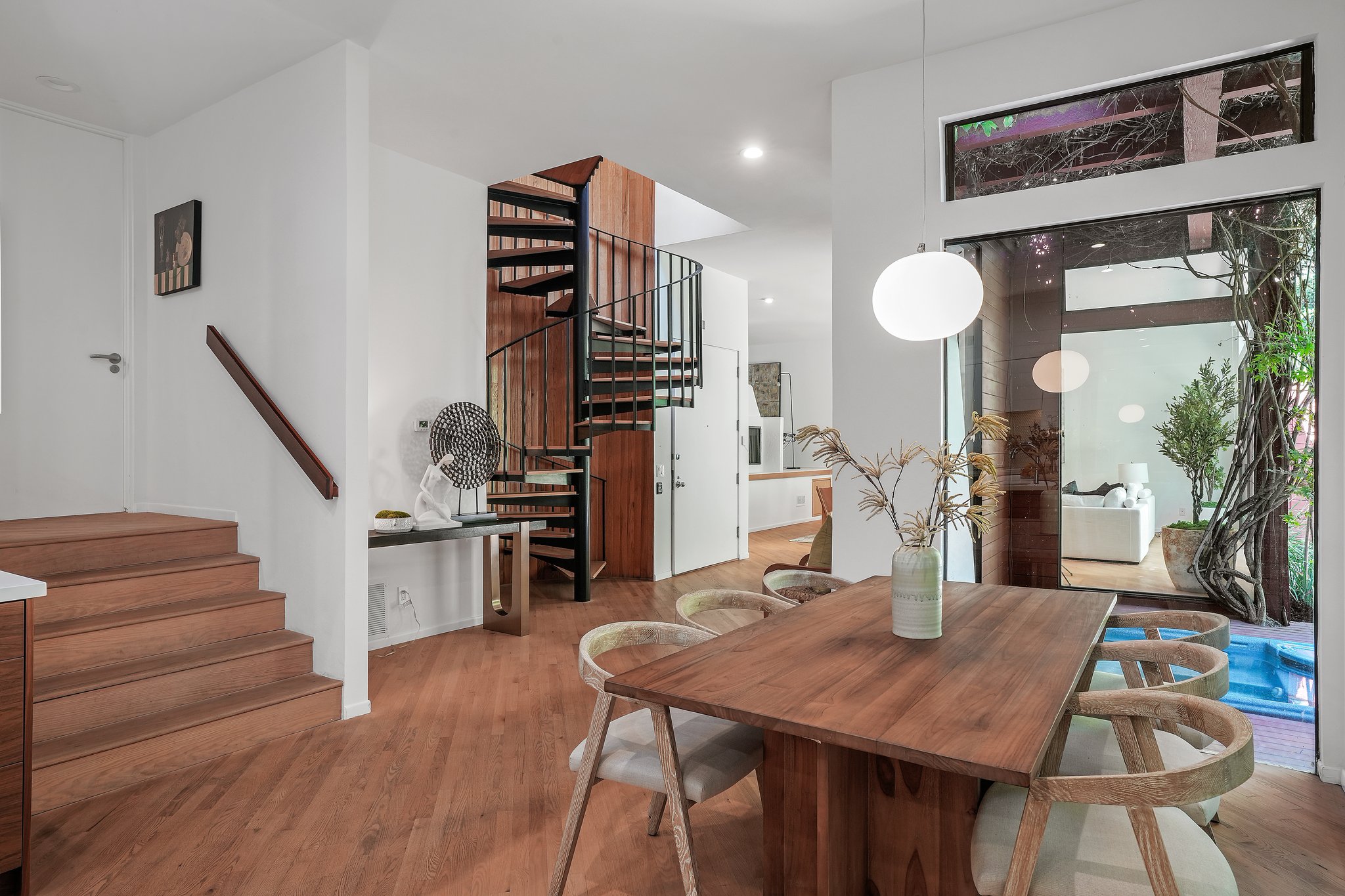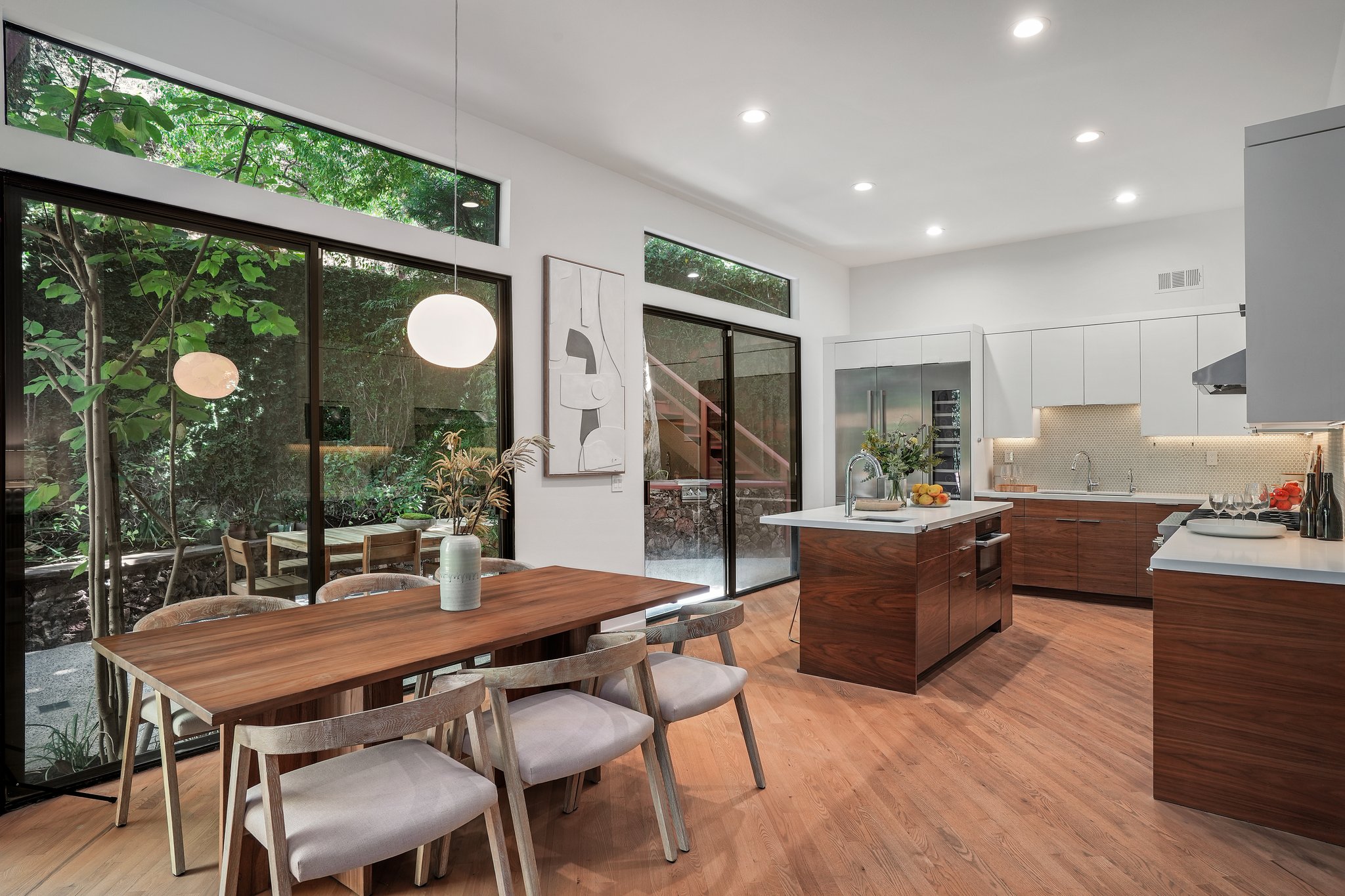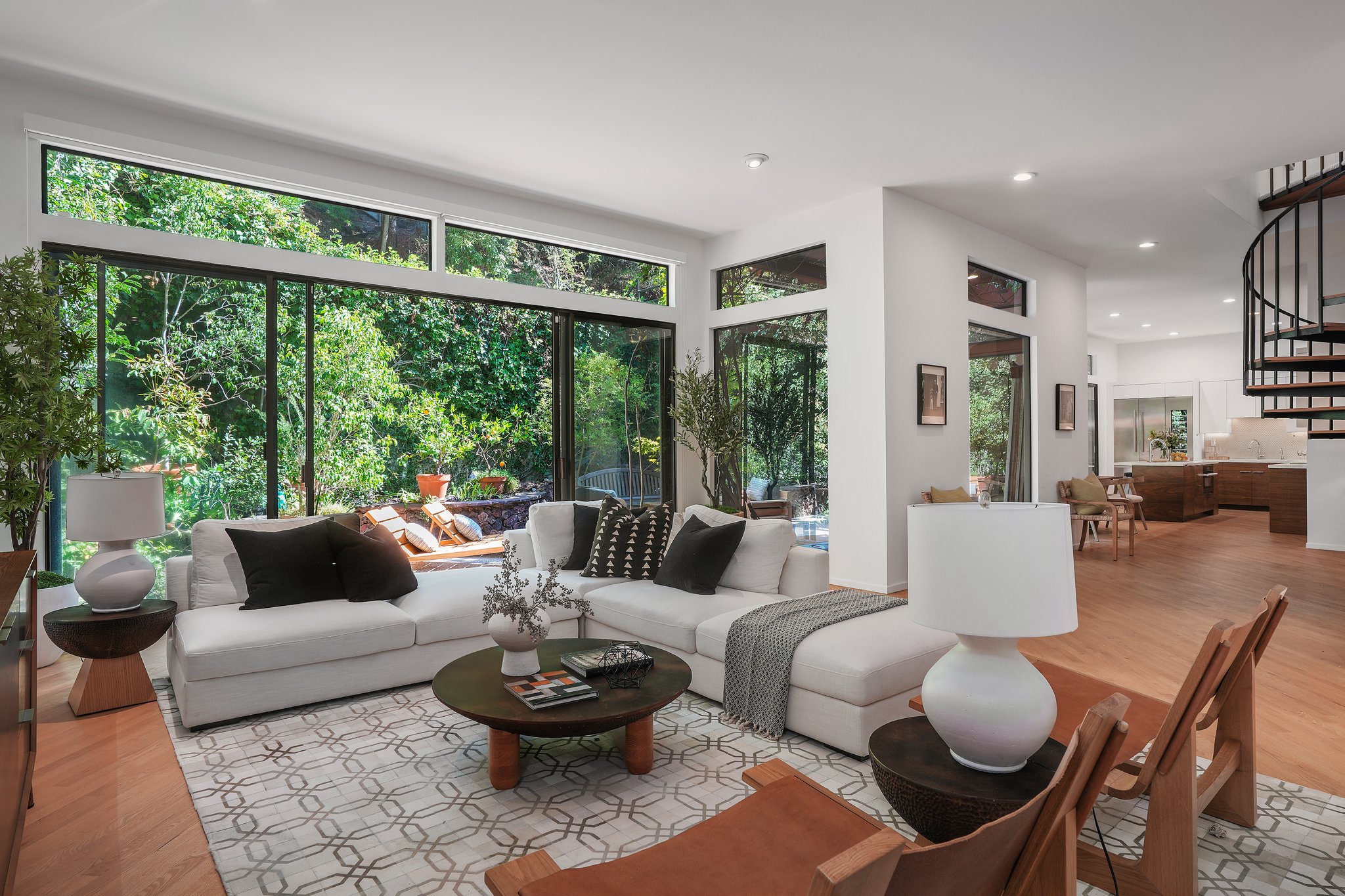 Nestled in the Beverly Hills Post Office, this exquisitely remodeled 3-bedroom, 2-bathroom retreat offers a tranquil oasis, making you forget you're in the city. Surrounded by lush trees and meticulously designed landscaping, the property evokes a serene, zen-like ambiance that feels worlds away from the hustle and bustle of Los Angeles. Step inside to discover a stunning blend of modern luxury and architectural beauty. The open living space is bathed in natural light, courtesy of floor-to-ceiling windows that offer breathtaking views of the greenery outside. An elegant architectural staircase adds to the home's contemporary charm, while unique windows invite the outdoors in, creating a harmonious balance between nature and design. A detached reading and writing cabin offers a peaceful escape, perfect for creativity or quiet reflection. Whether you're relaxing in this serene sanctuary or enjoying the finest of Beverly Hills living, this one-of-a-kind home offers the ultimate combination of luxury, privacy, and tranquility.