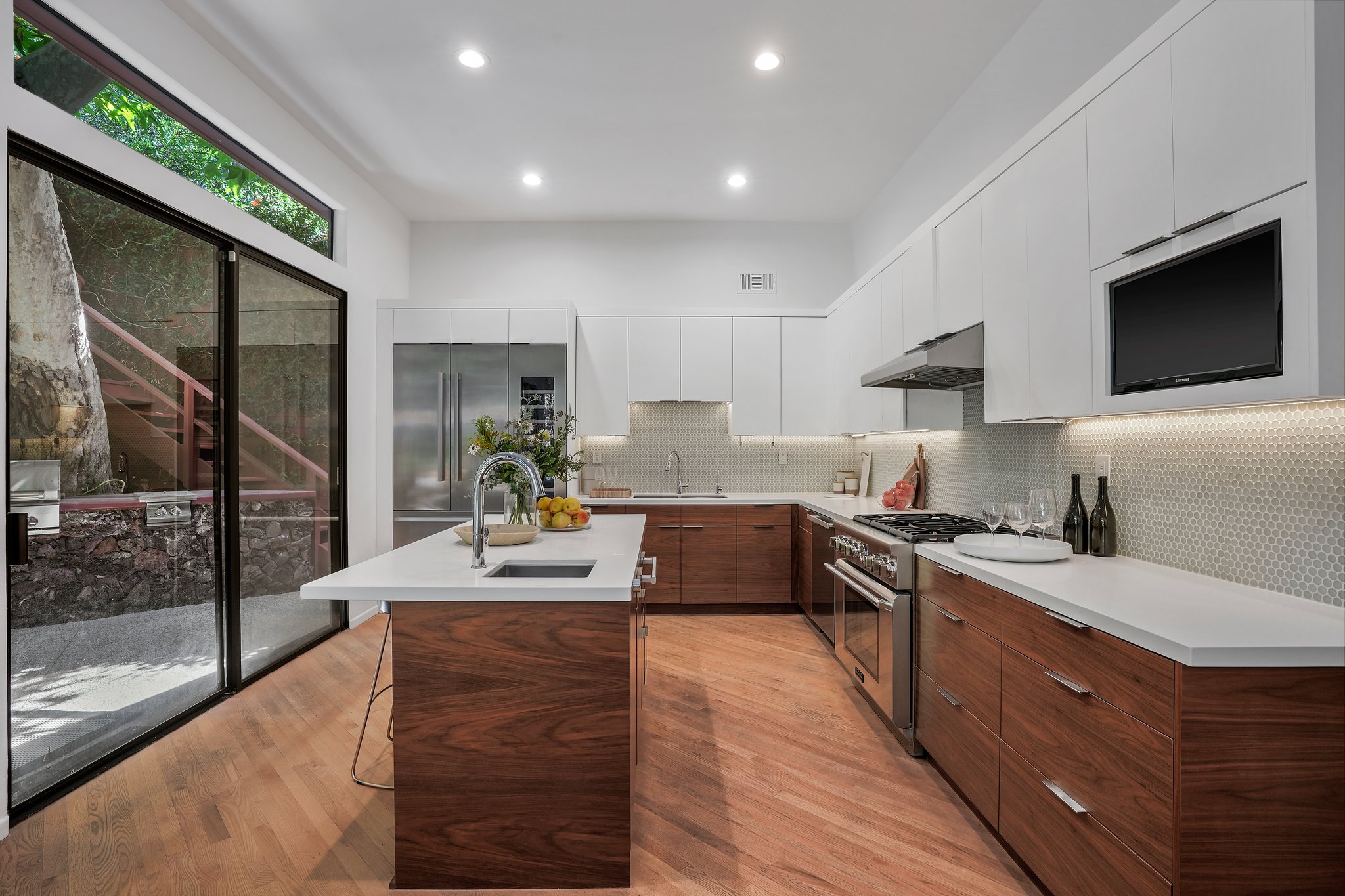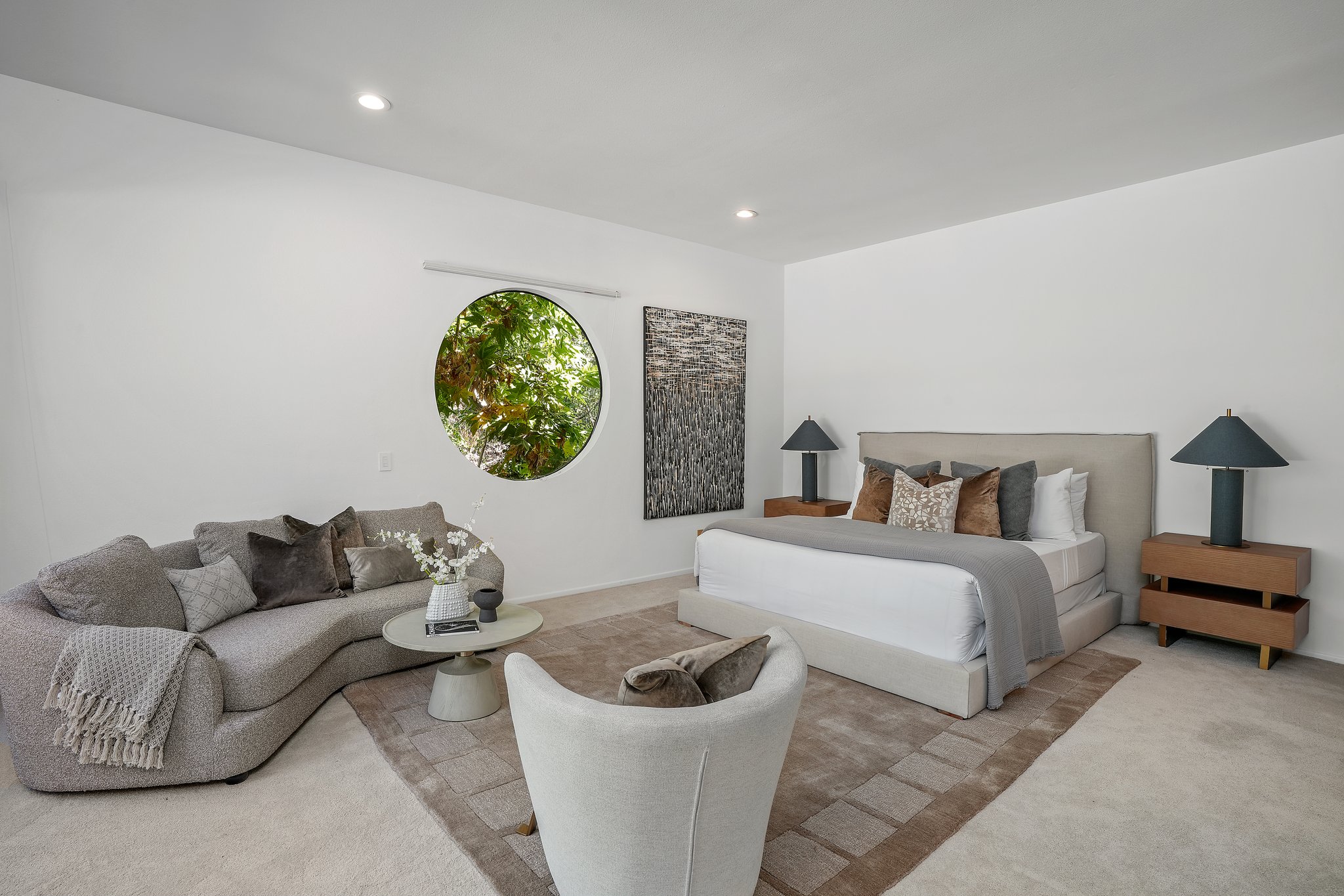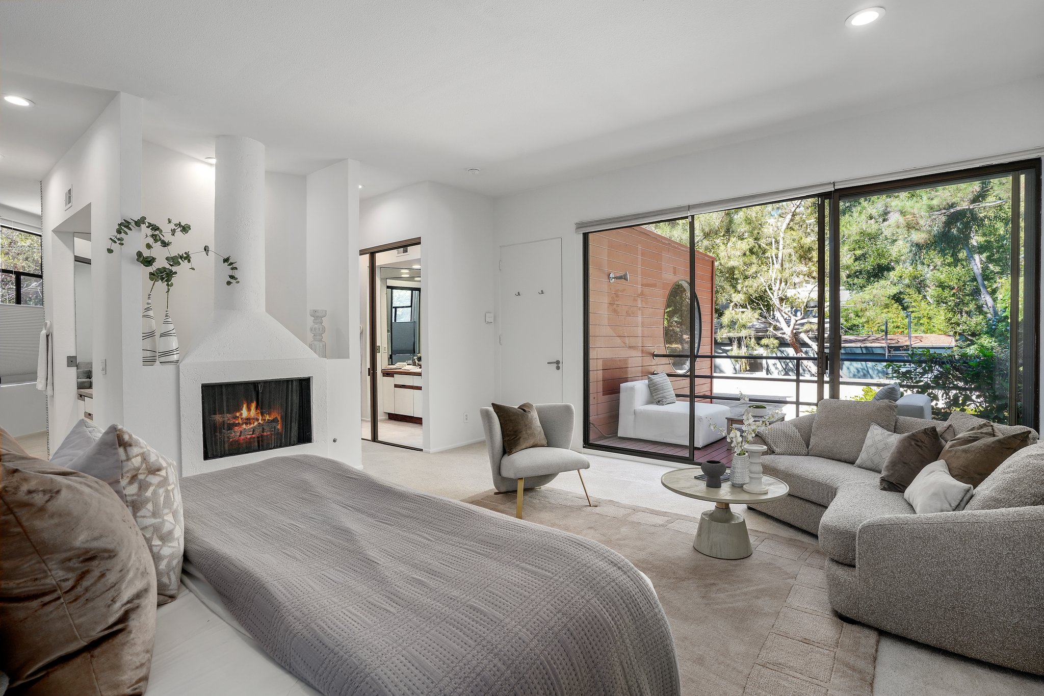 Nestled in the Beverly Hills Post Office, this exquisitely remodeled 3-bedroom, 2-bathroom retreat offers a tranquil oasis, making you forget you're in the city. Surrounded by lush trees and meticulously designed landscaping, the property evokes a serene, zen-like ambiance that feels worlds away from the hustle and bustle of Los Angeles. Step inside to discover a stunning blend of modern luxury and architectural beauty. The open living space is bathed in natural light, courtesy of floor-to-ceiling windows that offer breathtaking views of the greenery outside. An elegant architectural staircase adds to the home's contemporary charm, while unique windows invite the outdoors in, creating a harmonious balance between nature and design. A detached reading and writing cabin offers a peaceful escape, perfect for creativity or quiet reflection. Whether you're relaxing in this serene sanctuary or enjoying the finest of Beverly Hills living, this one-of-a-kind home offers the ultimate combination of luxury, privacy, and tranquility.
