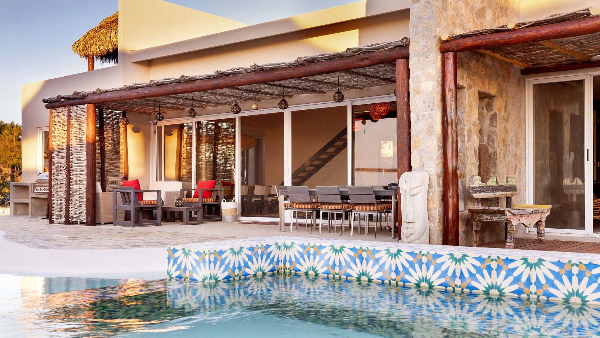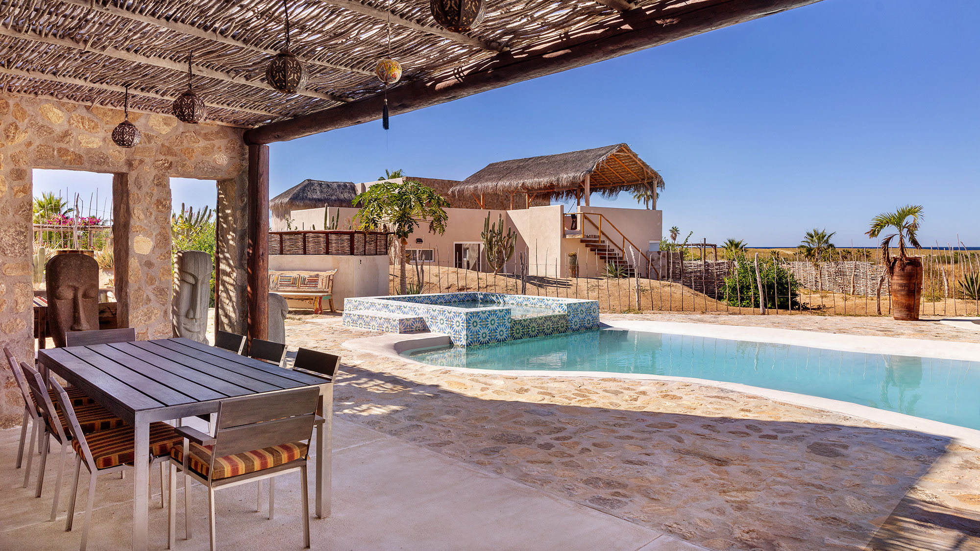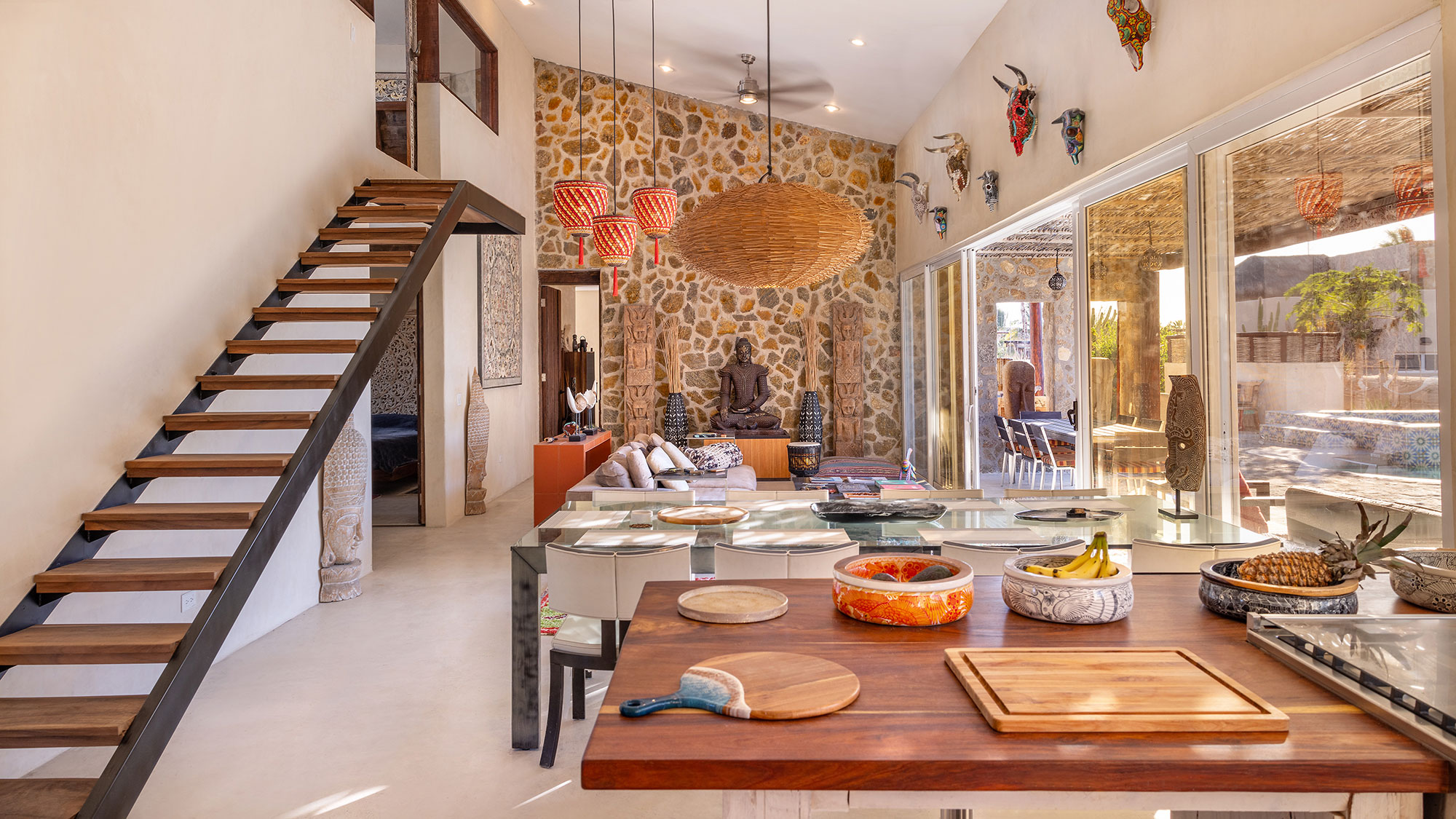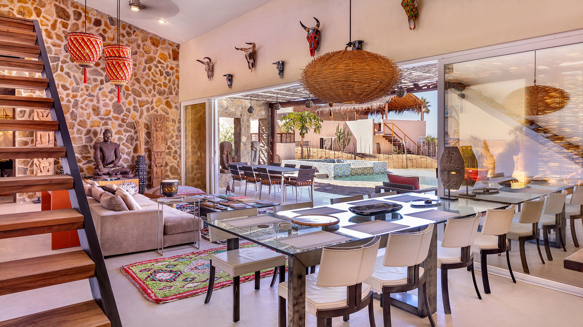 Discover the epitome of luxury living in the emerging Las Tunas area of Todos Santos. This brand-new, exquisitely designed ocean-view villa boasts 5 spacious bedrooms and 6.5 opulent bathrooms, making it a true masterpiece. Offered fully furnished with exquisite Minotti Italian furniture, this stunning property is located just 200 meters from the local beaches and crafted by the acclaimed designer Adam Shaffer, exemplifying meticulous attention to detail and sophisticated elegance. The villa features a versatile split-level layout, enhancing both functionality and rental potential. The first floor includes 3 well-appointed bedrooms and 3.5 luxurious baths, while the second floor offers two additional bedrooms, three baths, and an additional vast living area with two balconies. Step outside to find a captivating outdoor entertaining area, complete with a sparkling pool, rejuvenating hot tub, and sunken fire pit with built-in seating, ideal for relaxation and gatherings. The property also features a covered patio and a spacious upper-level deck, providing stunning views and ample space for outdoor enjoyment against the breathtaking backdrop of the Baja Sur Peninsula. Recognized in esteemed publications such as Fashion Life Magazine and HVV, this villa redefines luxury and promises an extraordinary retreat like no other. This is a must-see property that combines elegance, comfort, and coastal living!